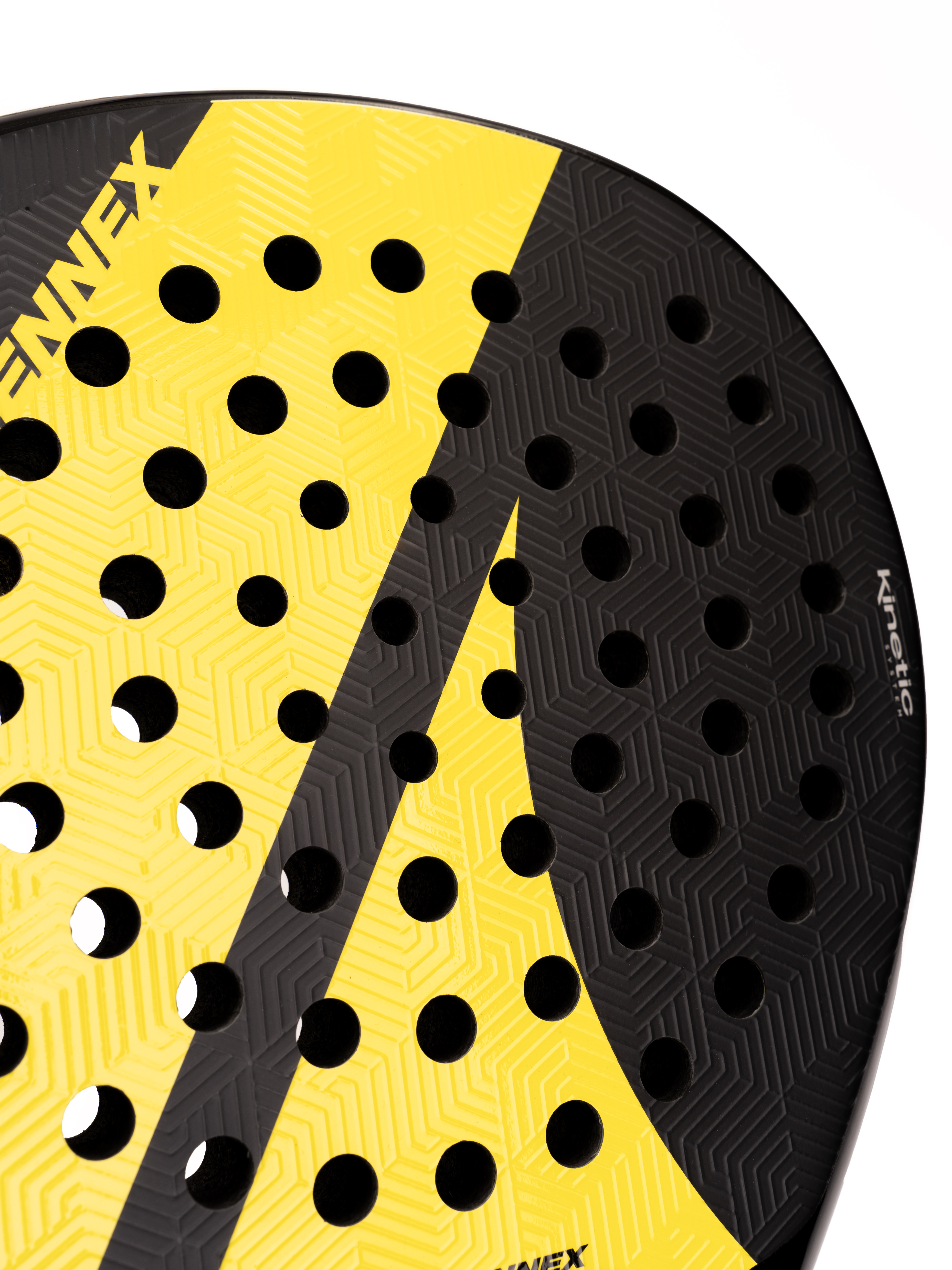 Ракетка для падел Pro Kennex KINETIC FOCUS PRO Yellow. Эта ракетка подходит для атакующих игроков, которым нужен маневренный и отзывчивый помощник, позволяет увереннее играть у сетки. Вес в 375 граммов позволяет создавать мощные и чёткие удары, управлять ходом игры и наслаждаться каждым розыгрышем: Длина ракетки: 455 мм Профиль: 38 мм Вес: 375 гр Баланс: 270 мм Гибкость: 68