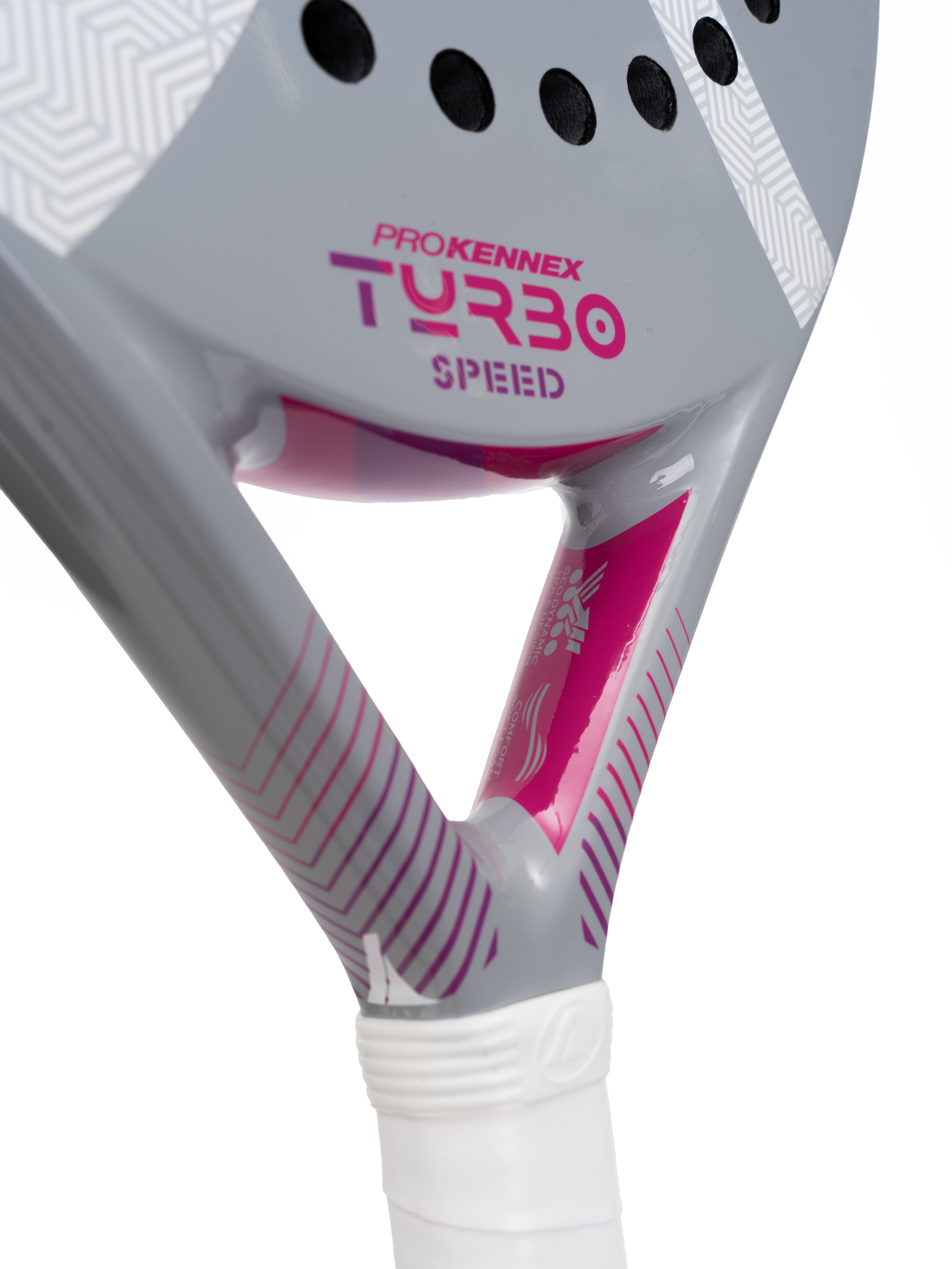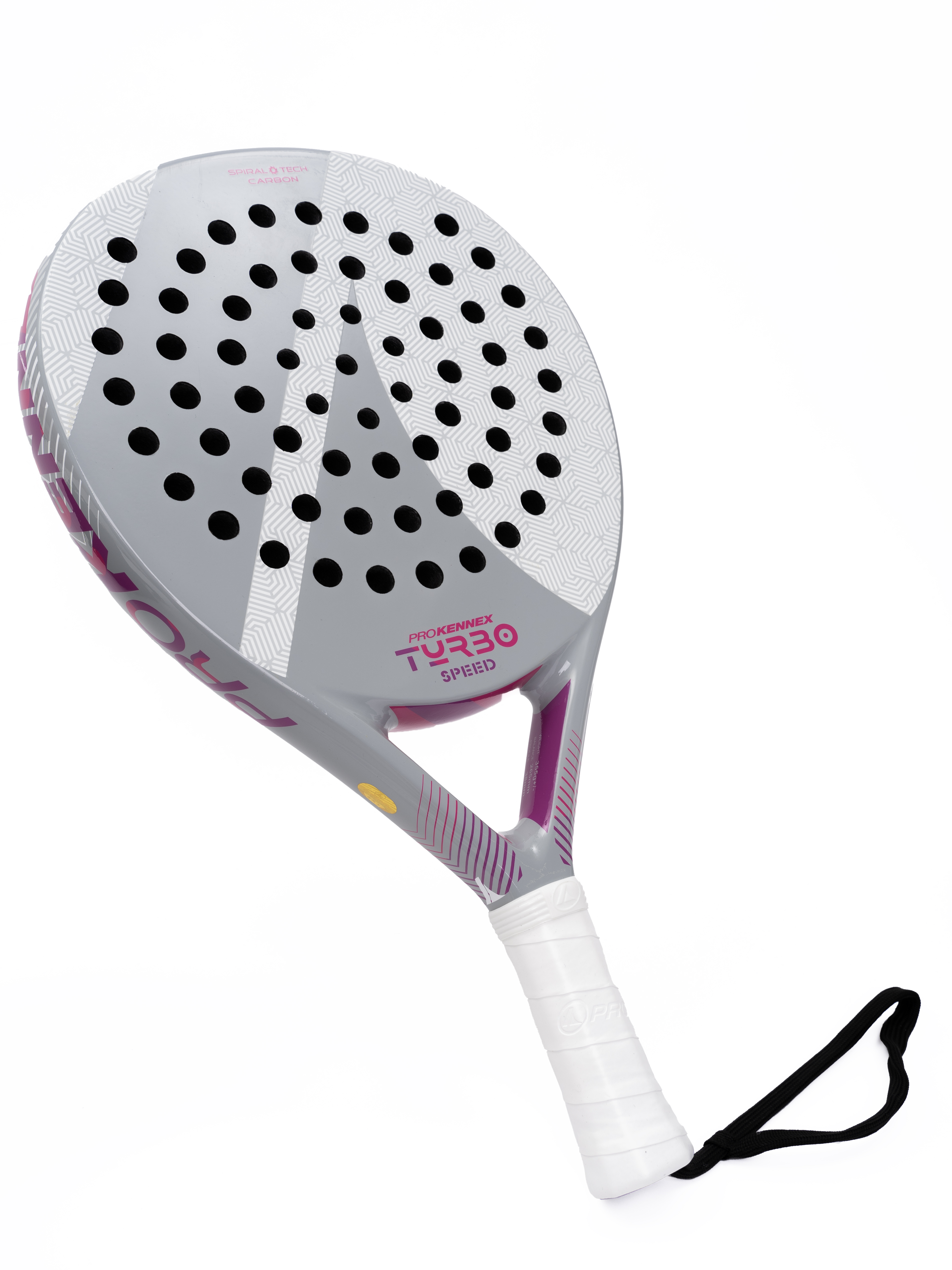 Ракетка для падел Pro Kennex TURBO Головка ракетки - круглой формы, обеспечивает контроль и уверенность в ударах для спортсменов разного уровня, от начинающего до профессионала. Эта модель представлена в двух вариантах (вес 365 и 355 граммов) и трех цветах. Основным отличаем является комфорт в игре, что позволяет игроку любого уровня сразу почувствовать игру. Три слоя материала Spiral Tech Carbon обеспечивают стабильность и контроль. Большой размер полезной ударной поверхности и современный материал основы Soft EVA 16 обеспечивают более качественную работу системы и обработку мяча в любых игровых ситуациях. Особая технология - диаметры отверстий разного диаметра, обеспечивают превосходное управление ракеткой и чёткое воздействие на мяч. Небольшой вес 355 граммов версии TURBO SPEED придает ракеткам дополнительную маневренность. Идеально подойдет для девушек и женщин. Длина ракетки: 455 мм Профиль: 38 мм Вес: 355 гр Баланс: 265 мм Гибкость: 61 Ракетка поставляется в чехле